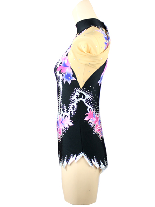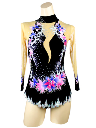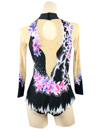 Confortable black lycra leotard. Flower patten to lift the look. Slender silhouette with printed flowers.