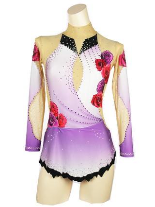 An elegant gradient color leotard soft colors brings the contrast of the printed rose pattern.